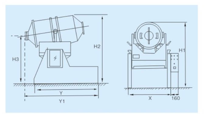 3、工作時,在轉動機構和擺動機構的雙重作用下,裝料的料筒作轉動的同時,又有擺動運動,從而使筒內的物料得以充分混合。