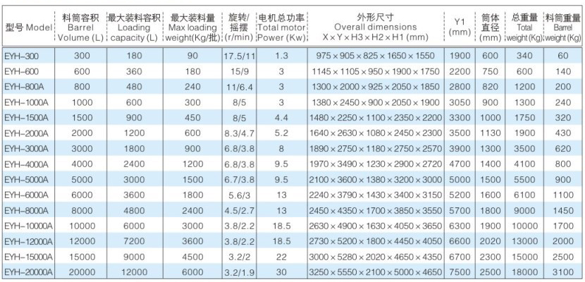 1、本機混合筒在轉動的同時又參與擺動,使筒中物料得以充分混合。混合筒的出料口偏離混合筒圓筒部分的中線,使該機具有混合迅速、混合量大、出料便捷等特點。本機混合筒在轉動的同時又參與擺動,使筒中物料得以充分混合。混合筒的出料口偏離混合筒圓筒部分的中線,使該機具有混合迅速、混合量大、出料便捷等特點。二維混合機型號從100升到15000升不等,一般來說,其裝料量約為總容積的1/2。