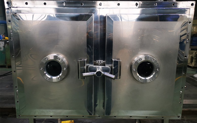 低溫脈動真空干燥機主要有箱體、烘架、烘盤、破泡系統、加熱系統、真空系統、控制系統組成。